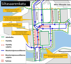 Siltasaarenkadun katuremontti aiheuttaa muutoksia moottoriajoneuvo- ja pyöräliikentee…