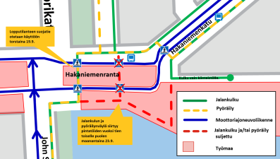 Jalankulun ja pyöräilyn reitit muuttuvat Hakaniemenrannassa